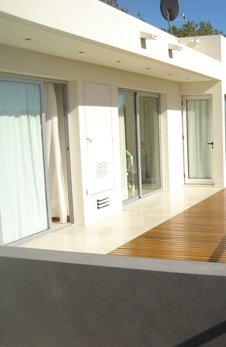 Se realizo con materiales y tecnologia tradicionales, La estructura es de hormigon armado y cubierta de losa armada. La carpinteria es de aluminio anodizado, con DVH.