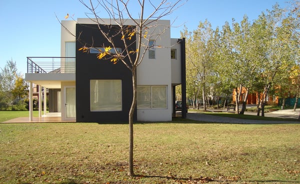 Vivienda unifamiliar ubicada en un barrio cerrado. La casa se organiza en 2 niveles, con un planteo compacto. Se penso en dos etapas, en la primera se construyeron en planta baja el living comedor, cocina, lavadero y pieza y baño de servicio, en planta alta el dormitorio en suite con vestidor y dos dormitorios para niños, todos mirando al parque y pileta. Se planteo la ampliacion con play room en planta baja y otros dos dormitorios en planta alta, sobre la cochera descubierta de la primer etapa.